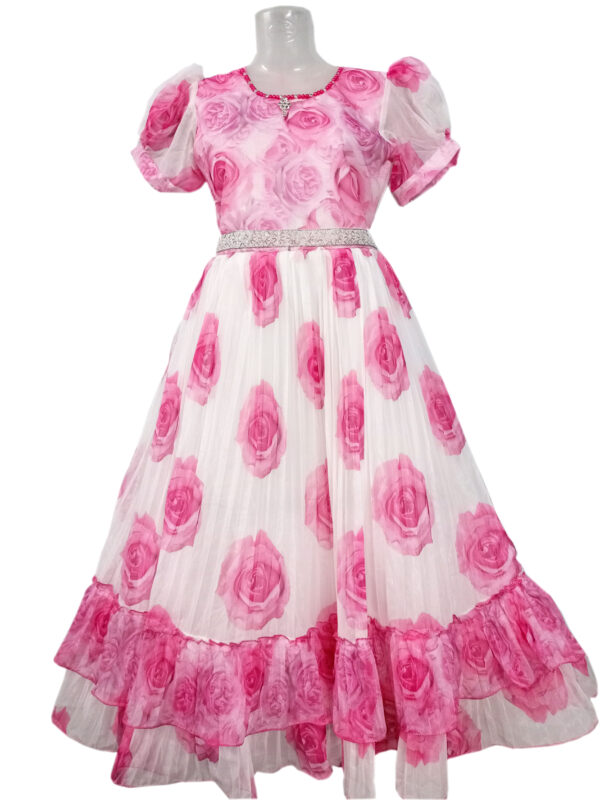 The gown features delicate embroidery and intricate detailing, adding a touch of elegance and sophistication. The flowing silhouette and graceful flares create a dreamy look, perfect for twirling and capturing magical moments. Whether she’s celebrating a birthday, attending a wedding, or dressing up for a special occasion, this Cinderella gown ensures she stands out beautifully.